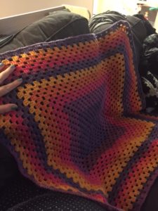 Stressed out by scanxiety while travelling to your hospital? Crochet a granny square style blanket to keep a chemo patient warm in those chemo chairs! My husband calls it road trip crochet! (Not while you are driving of course! Yikes!)