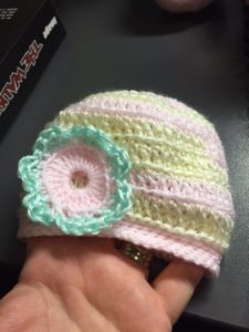 Now, a year later, I am a full blown crochet addict! And proud of it! I have started a crochet group in my hometown as people from all walks of life gather to gab and learn. My stress is pretty much nonexistent now as I know my hook and yarn will be there for me. If I’m feeling anxious at the doctor’s office? I whip out the good ol’ yarn bag. People young and old ask me what I’m doing, what I’m making, I make friends wherever I go! It opens up the line of communication and brings awareness to childhood cancer as I tell them I’m making chemo hats for the kids.